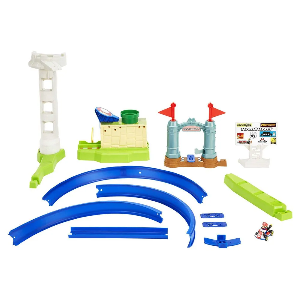 Hot Wheels brings the fast-paced action of the Mario Kart™ world to life with the Circuit Slam™ track set inspired by iconic courses from the popular video game. Send the included Mario character kart vehicle into action to overcome obstacles and challenges — just like in the game, but this time on Hot Wheels track! Load the kart into the launcher and take off around the circuit. Track the laps with the pass-through counter. Can the vehicle handle the curves and climbs? With big thrills, the playset makes a great gift for kids who love action and fans of the video game ages 3 years old and up. Colors and decorations may vary.