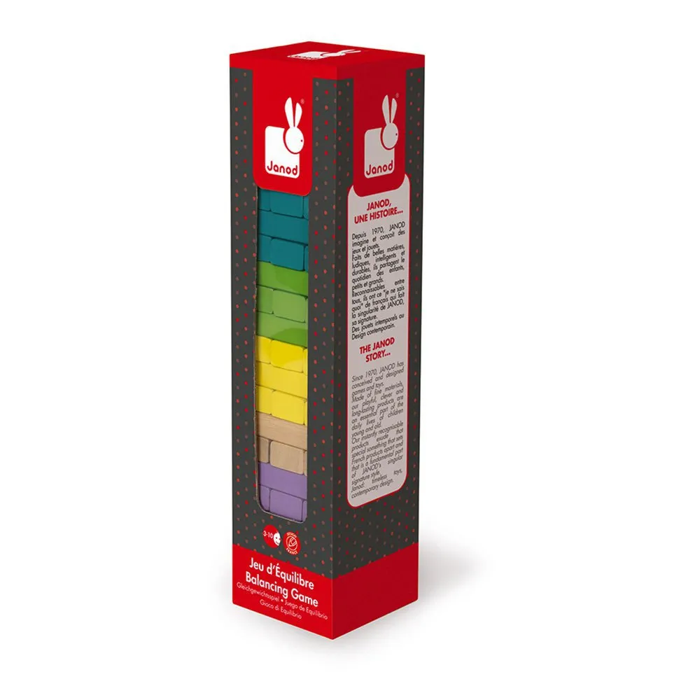 1/ Build the tower by placing the blocks in rows of 3 and mixing the colours.