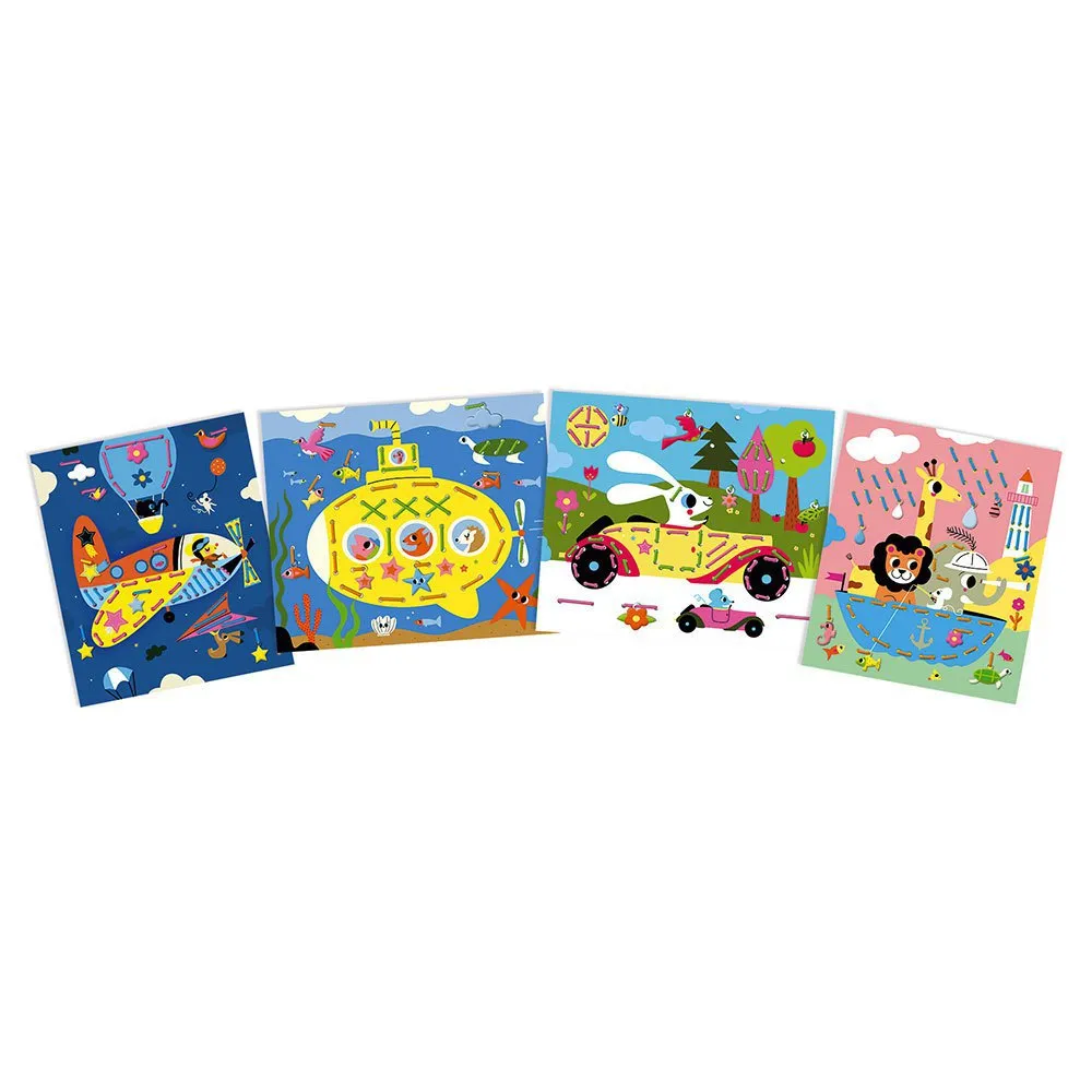 4 boards to decorate with 8 laces, elements to hang in paper.