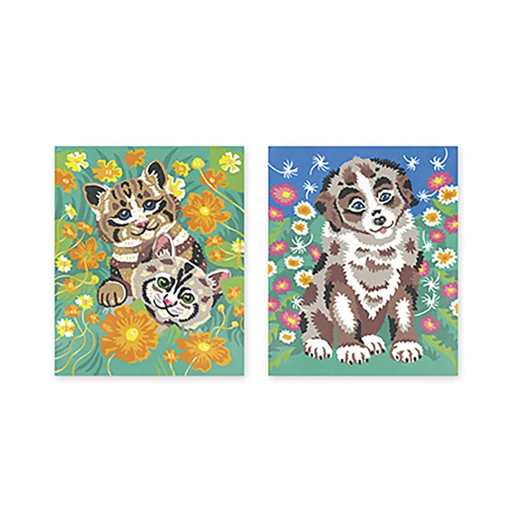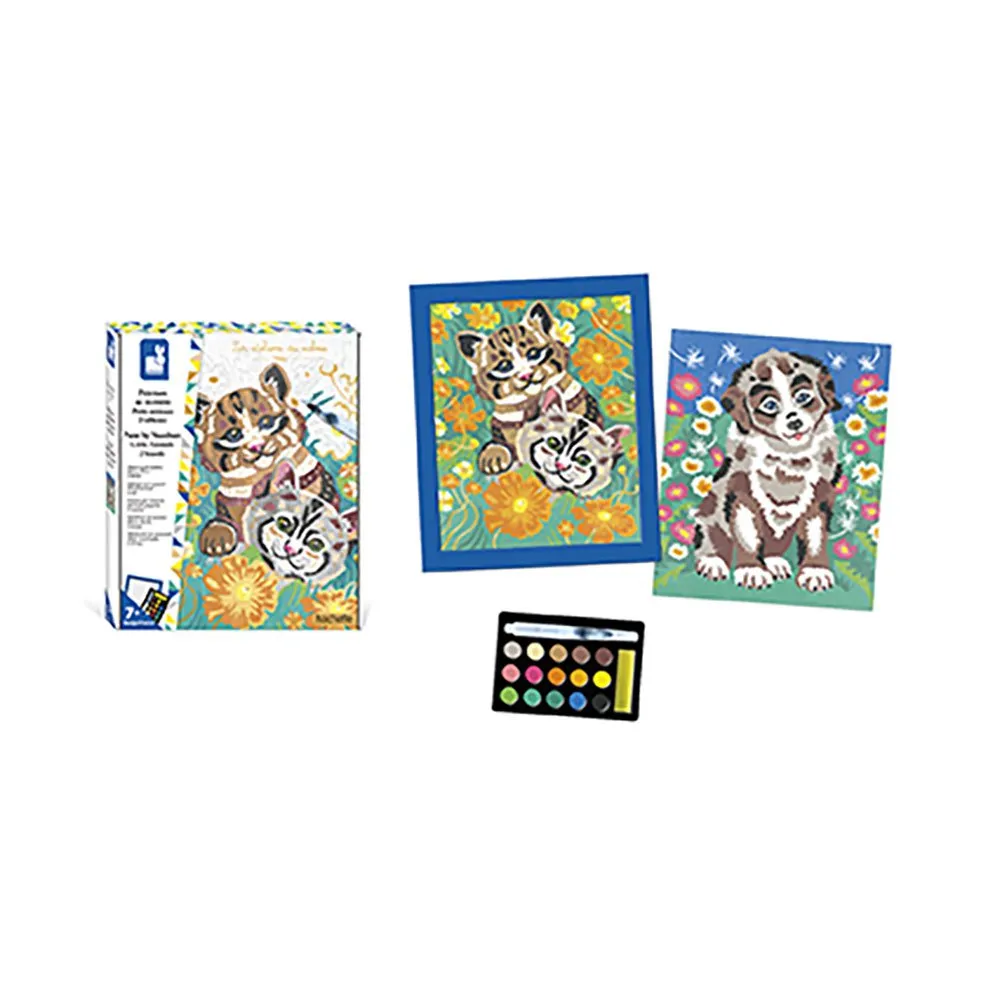 Children´s favourite companions brought together in a single activity! They are going to love it! This creative kit allows you to make 2 pictures using the paint by numbers technique.