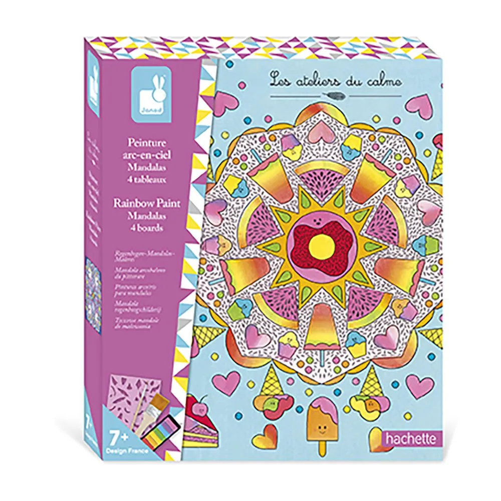Mandalas and a rainbow effect are the perfect ingredients for a stunning result! This creative kit consists of 4 pictures to be painted with stencils and rainbow paint.