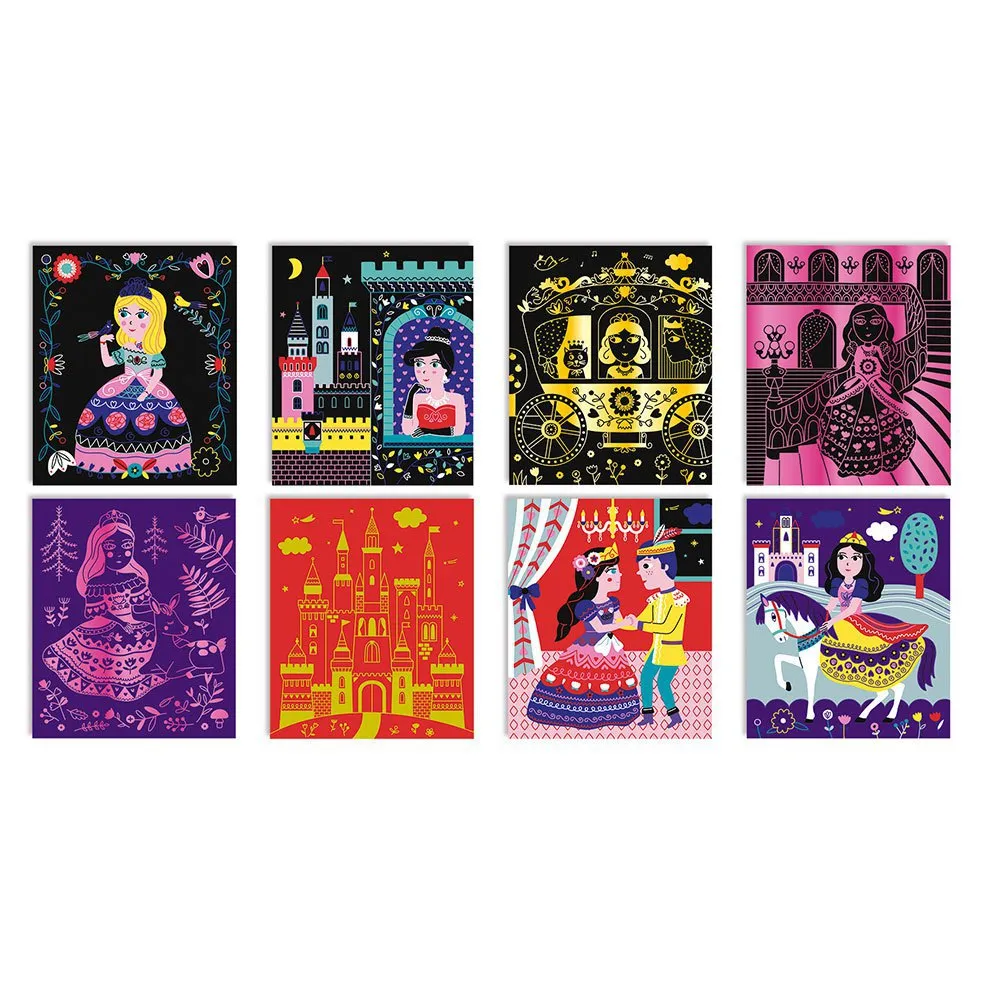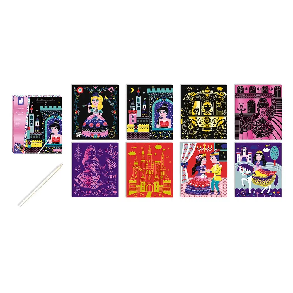 8 scratch-off cards, 1 wooden tool and 1 instructions leaflet with models.
