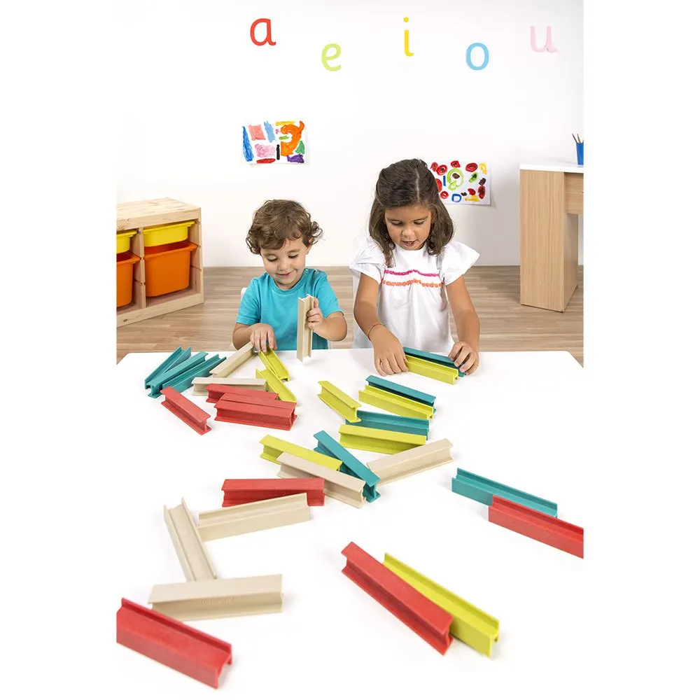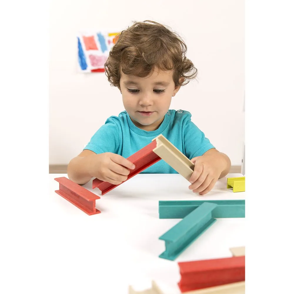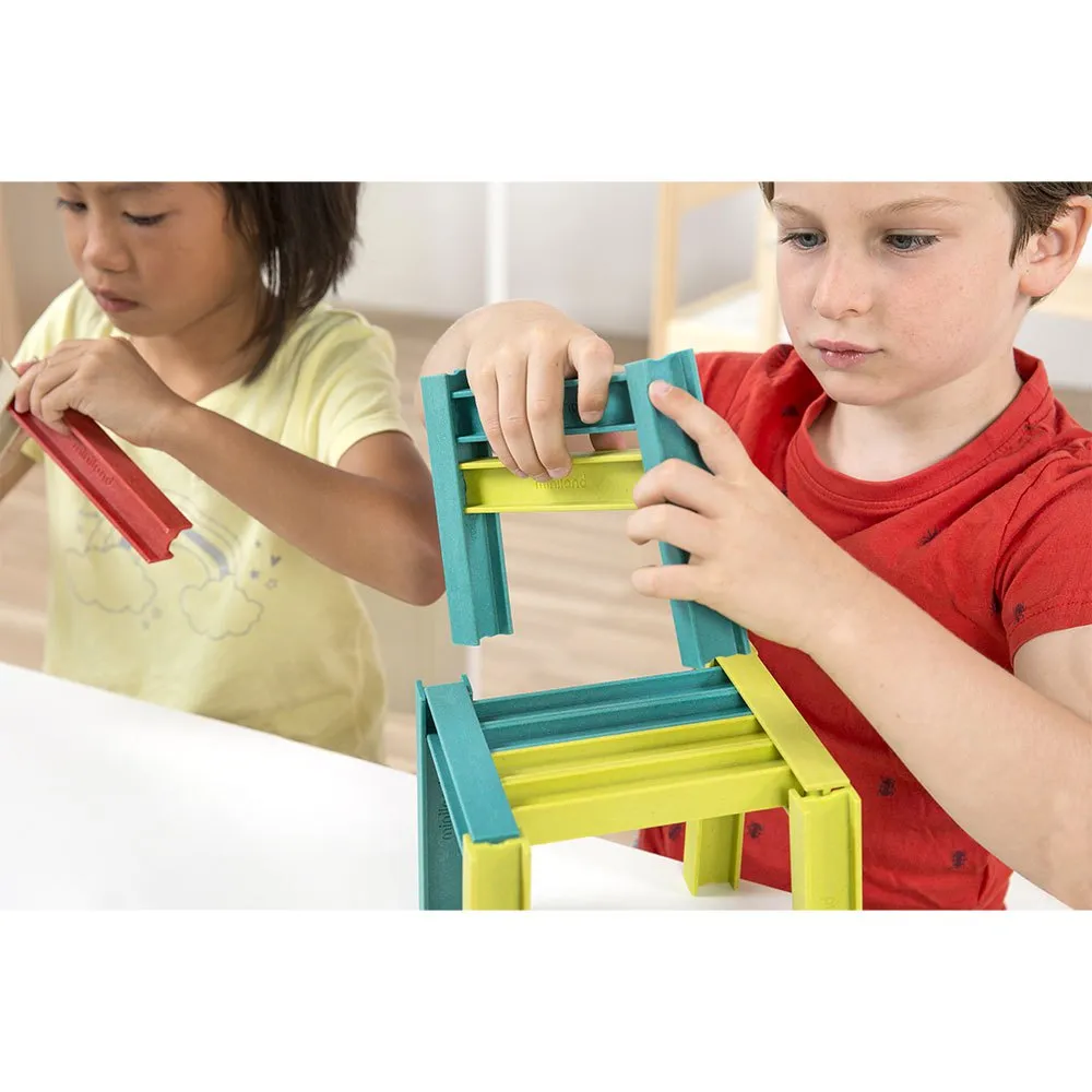 Ideal construction set to stimulate creativity, imagination and ingenuity, developing fine psychomotor skills, spatial vision, concentration and perseverance. Its 32 pieces are stackable and interconnected, which allows the game to be adapted to the developing progress of each kid. It includes a guide with 40 activities, ordered by difficulty, which makes it perfectly suitable to be used at different educational levels.