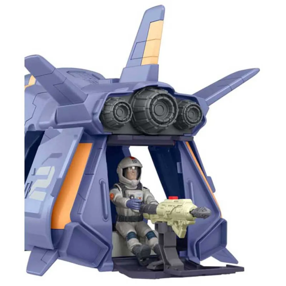 Discover Disney and Pixar´s Lightyear. Stranded on an uncharted planet, Buzz Lightyear and his crewmates will need to battle hostile plants, giant bugs and the ultimate threat, Zurg, to complete their mission and return home. This vehicle is inspired by Star Command´s uniquely shaped Armadillo spacecraft that plays a key role in Lightyear. The side doors slide open to reveal slide-out blaster positions and the button activated back door folds down to reveal another blaster position! This vehicle is armed and ready to recreate thrilling air battle scenes from the movie or center a dramatic Lightyear display. This more than 13-inch long vehicle can fit 5 inch scale figures in the pilot seat of the cockpit or behind the blaster. All figures sold separately and subject to availability. Colors, dimensions and decorations may vary.