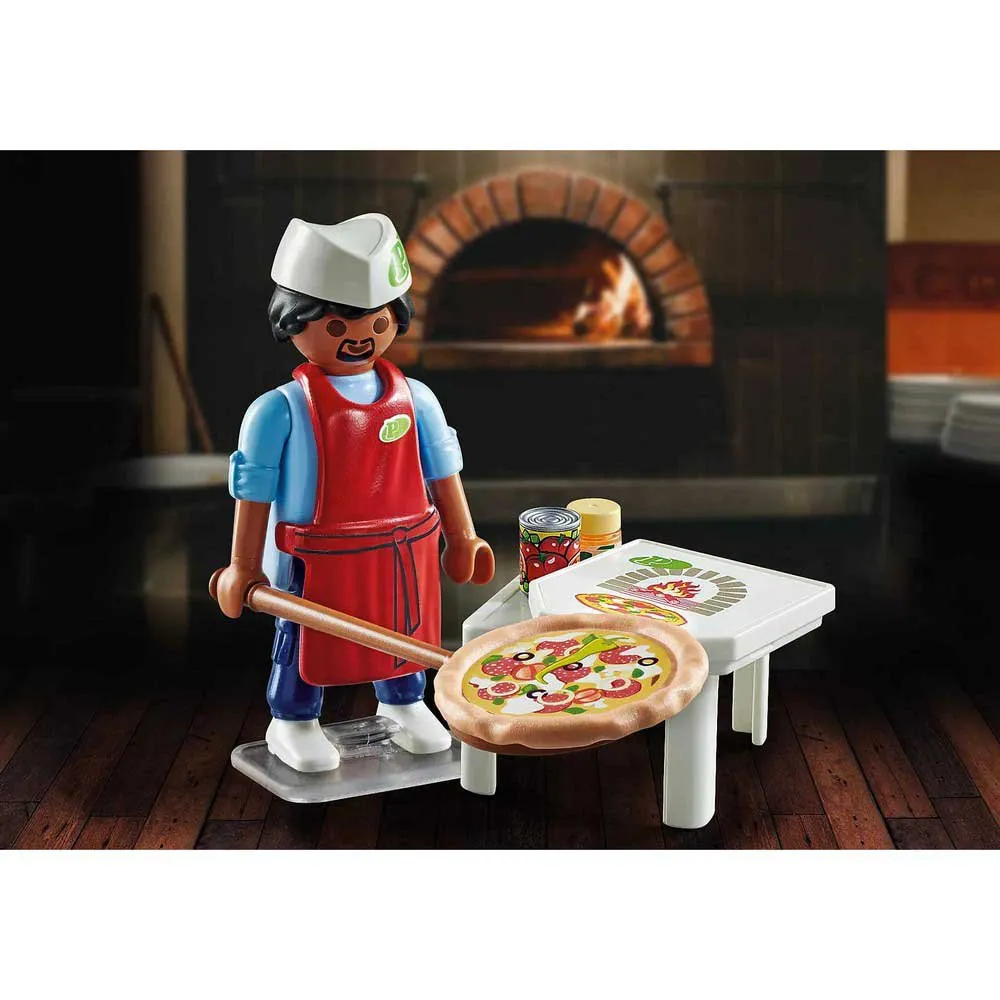 – Figures: 1 pizza chef; accessories: 1 pizza chef´s hat, 1 pizza board, 1 pizza box, 1 canned tomatoes, 1 table, 1 mozzarella, 1 baseplate